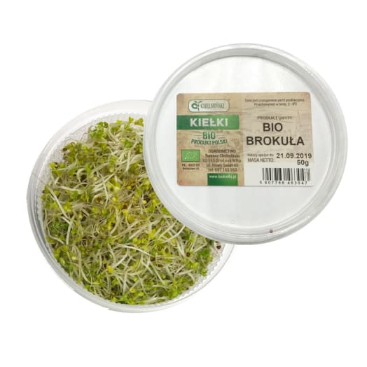Kiełki brokuła bio zawierają witaminy:A,C,wapno oraz żelazo.Kiełki brokuła zawierają sulforafan,substancję przeciwdziałająca powstawaniu nowotworów.Doskonałe do sałatek oraz kanapek.