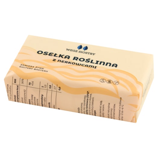 Osełka roślinna z nerkowcami to wegańska alternatywa tradycyjnej osełki. Delikatna w zapachu, kremowa w konsystencji, łatwo rozsmarowuje się na ulubionym pieczywie. Doskonale nadaje się jako zamiennik masła do smażenia, pieczenia, przygotowania ciast, kremów.