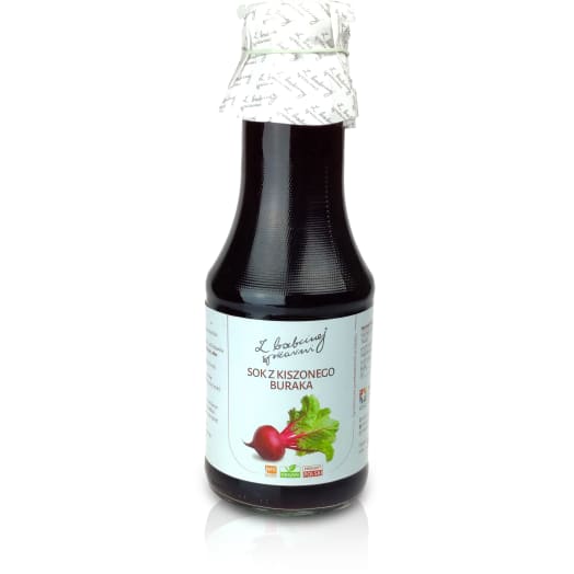 Sok z kiszonego buraka sporządzony ze świeżych buraków z dodatkiem naturalnych przypraw, w szklanej butelce hermetycznie zamkniętej utrwalony w procesie pasteryzacji. Wyprodukowany na bazie własnego ujęcia wody.